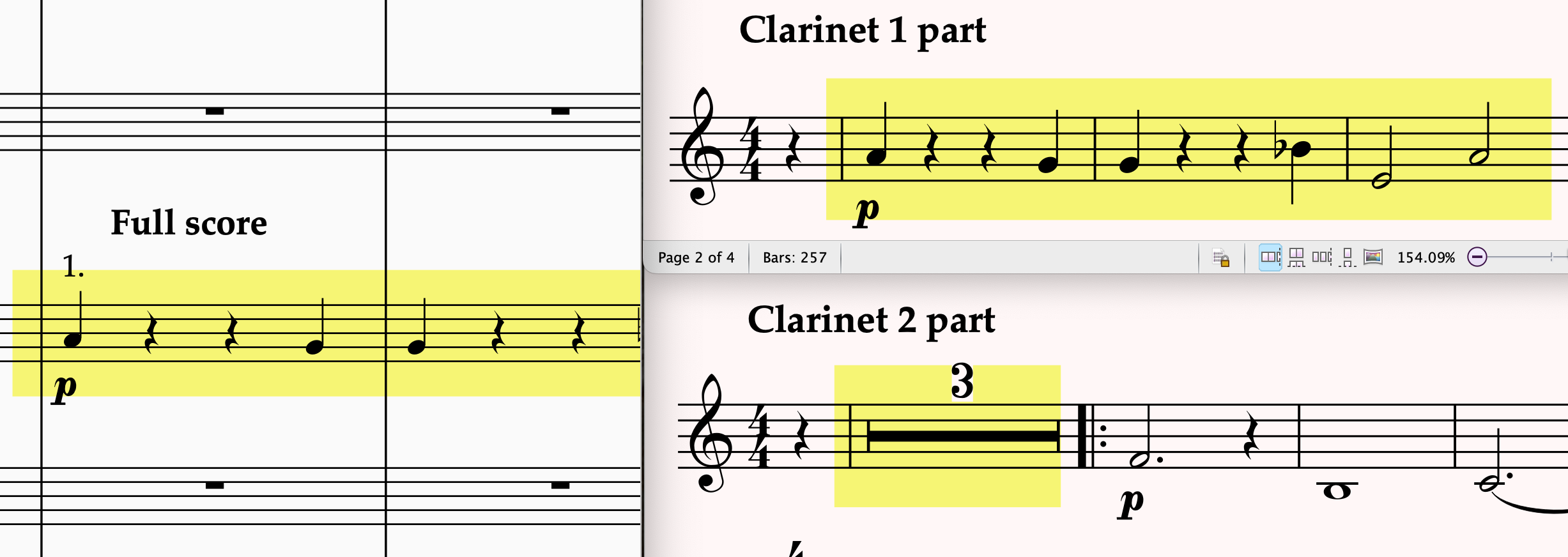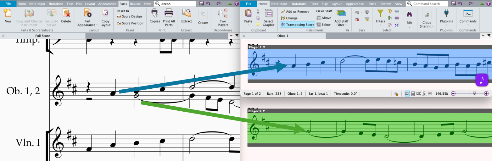 Una de las características más destacadas es la decondensación automática de partes, que permite separar automáticamente las partes condensadas en partituras individuales. Esta función simplifica considerablemente el proceso de edición y preparación de partituras para ensayos y conciertos.